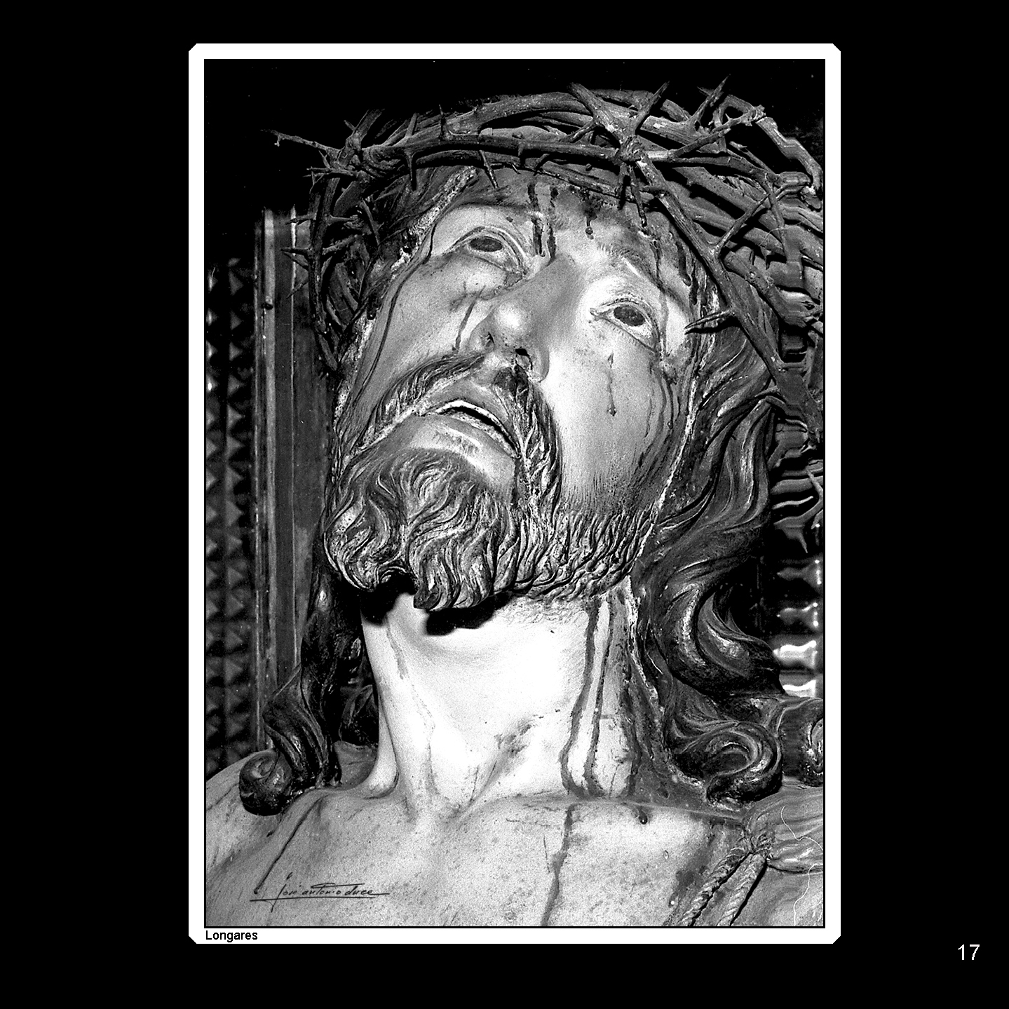 En Longares, en la comarca de Campo de Cariñena, el objetivo de José Antonio Duce entró en la iglesia parroquial de La Asunción para captar en primer plano todo el dramatismo y patetismo de este Ecce Homo; una sobrecogedora representación artística de un cuerpo sufriente y torturado.