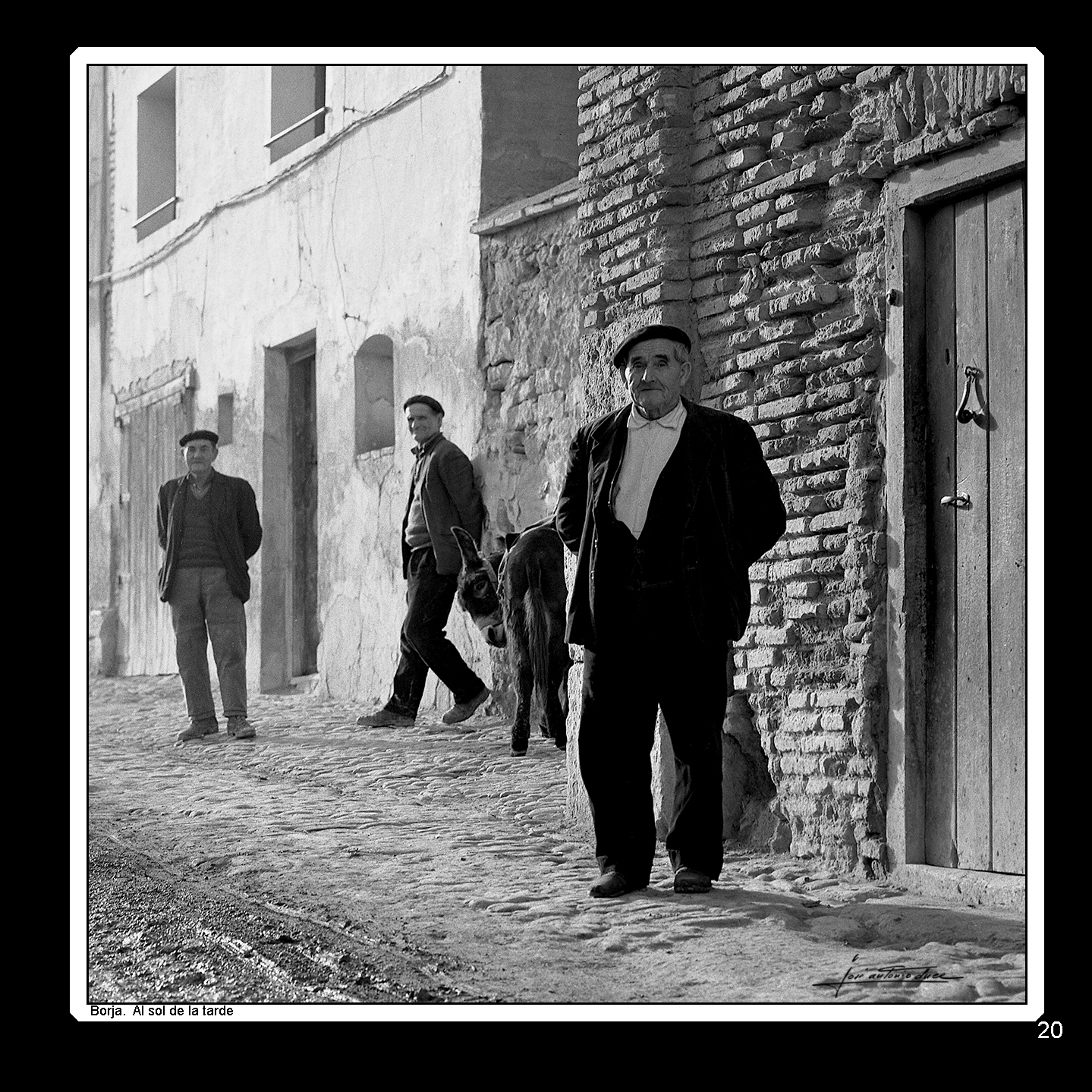 “Borja. Al sol de la tarde” tituló José Antonio Duce esta instantánea de su serie “Aragón en mi recuerdo” en la que, en efecto, no muestra un monumento ni un elemento singular, sino un simple momento de la vida cotidiana. Una escena que podría haberse tomado en un pueblo cualquiera y el artista convierte en arte y documento.
